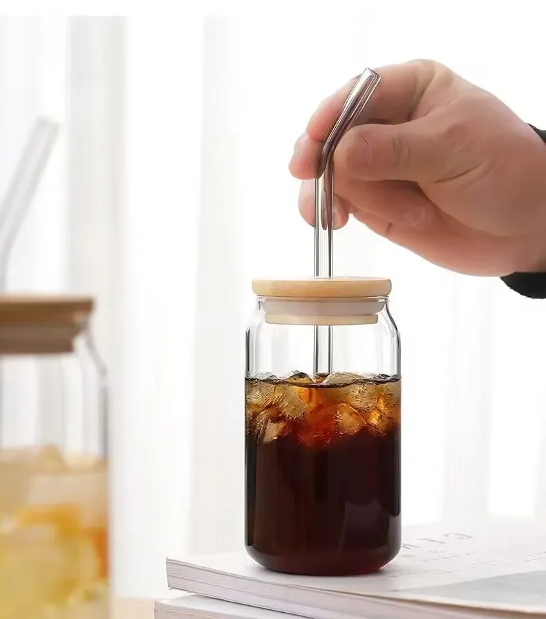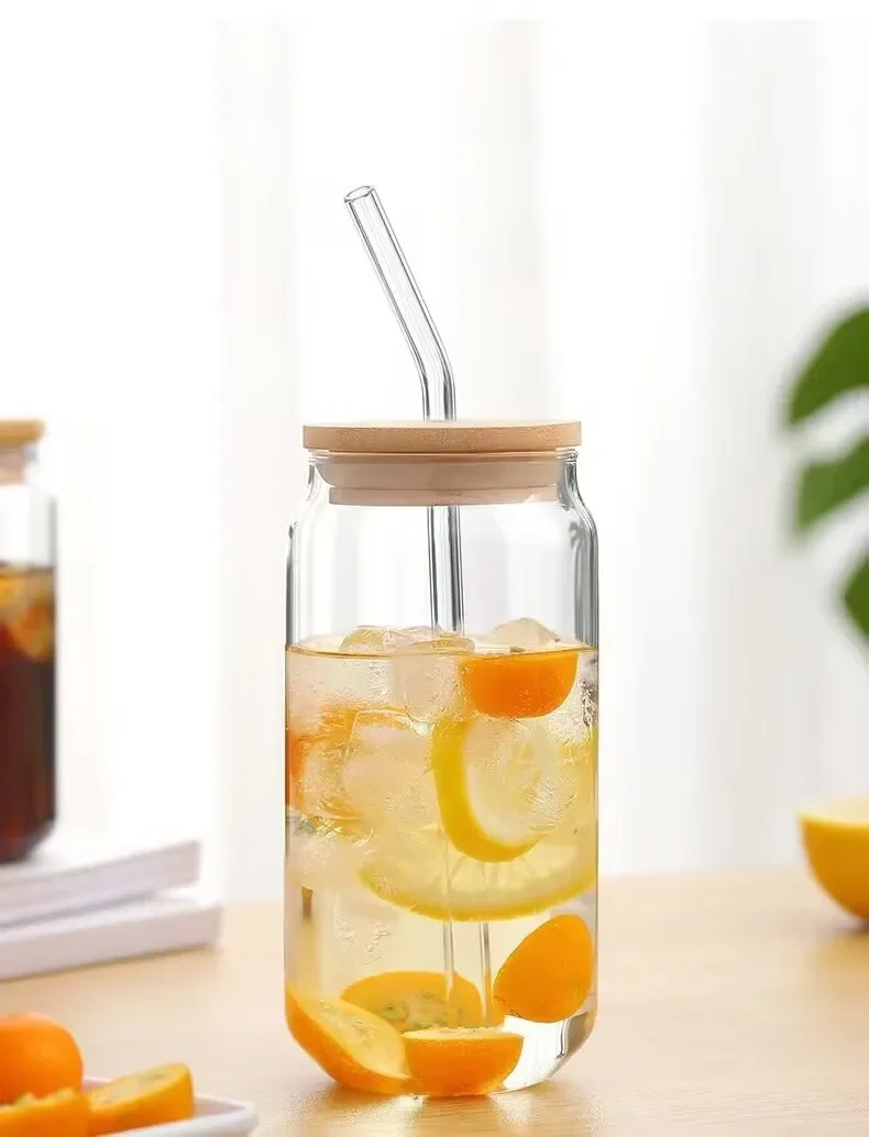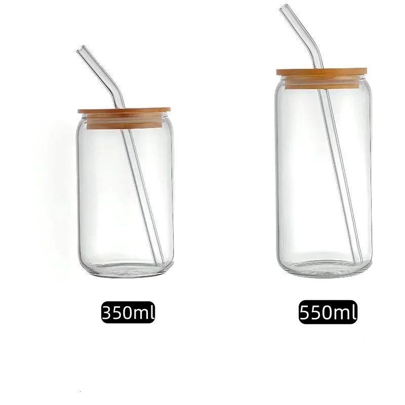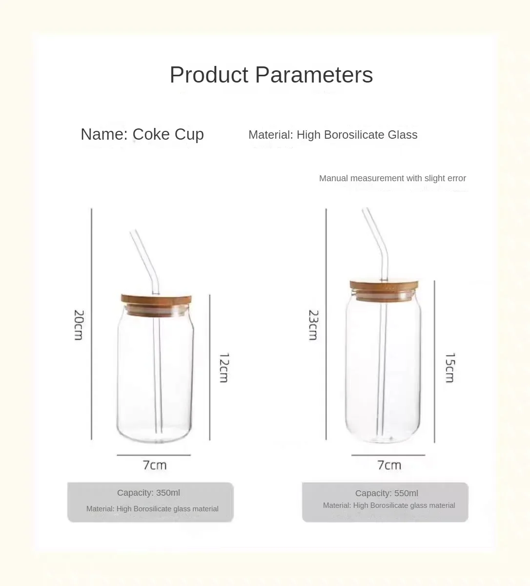 350ml/550ml Glass Cup Cola Cold Drink Water Cup with Bamboo Lid Coffee Milk Juice Straw Mug Beer Can Drink Home Breakfast Cup