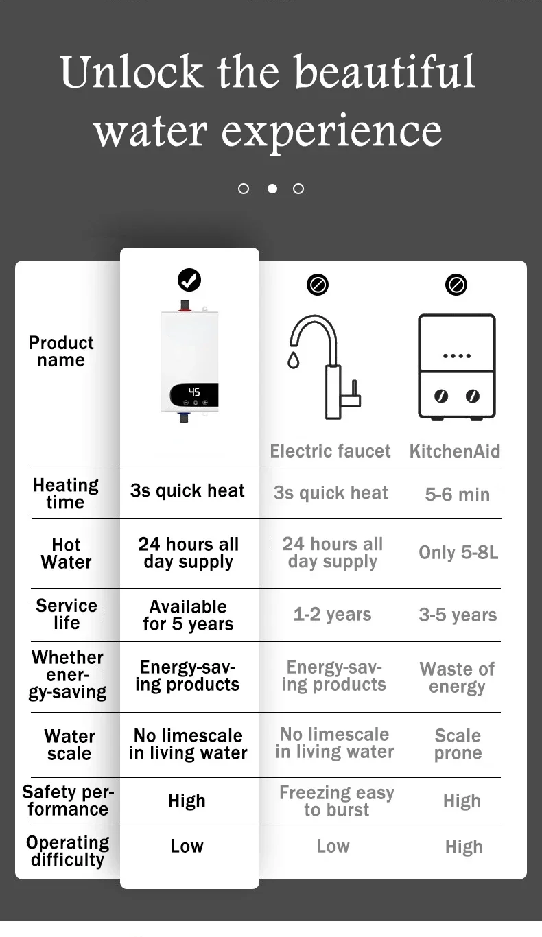 ● Safe heater, electricity saving, water saving, no pollution, no exhaust gas.