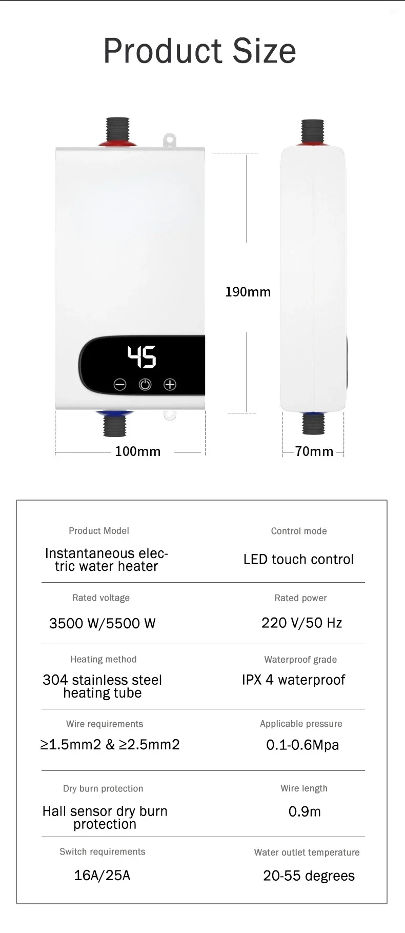 ● Various protections: Leakage protection, IPX4 waterproof, Dry heating protection, Water-electricity isolation, Auto power-off at inactive state, Over-temperature automatic power-off.