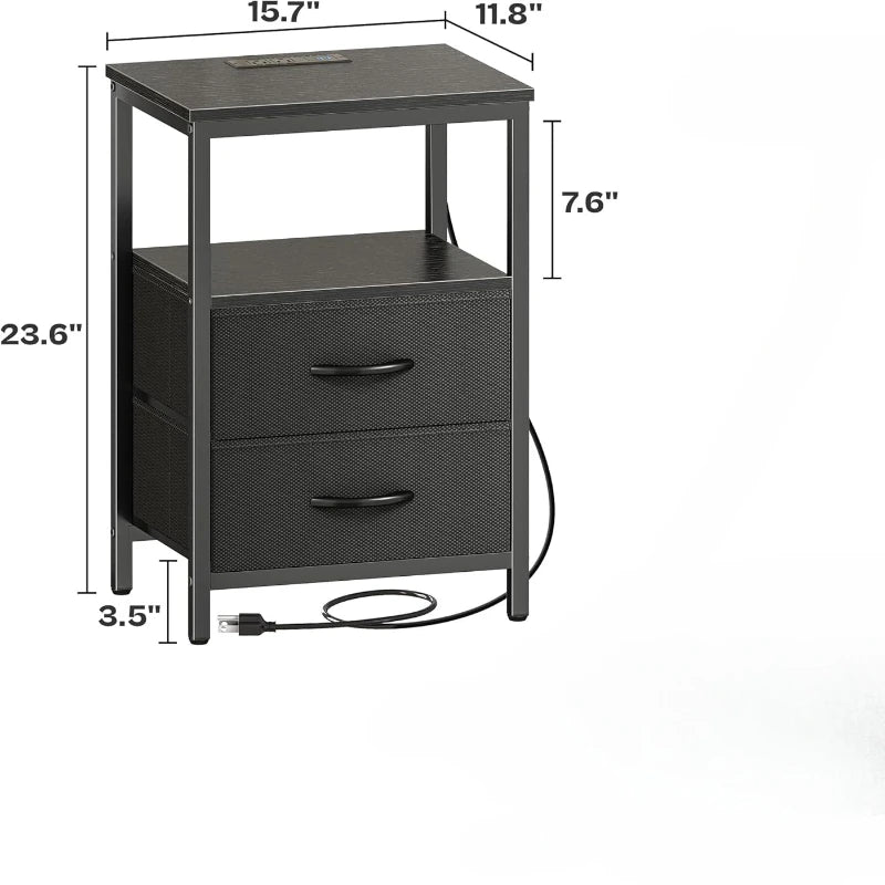 Night Stand Charging Station LED Nightstand Usb Ports Outlets 2 Storage Drawers Small Bedside Table Black Aesthetic Modern