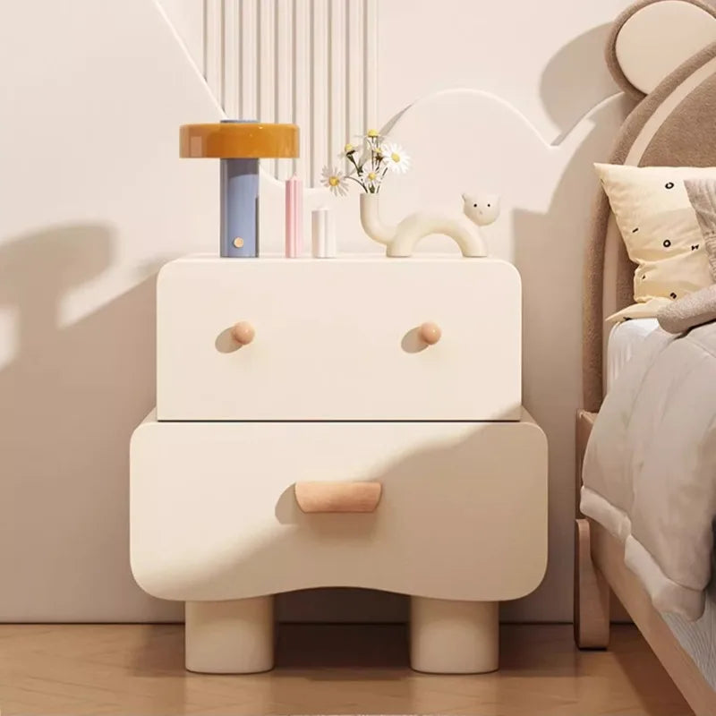 Solid Wood Nightstand for Children Minimalist Robot Design Storage Cabinet with Shelf Bedroom Side Table with Rounded Corners